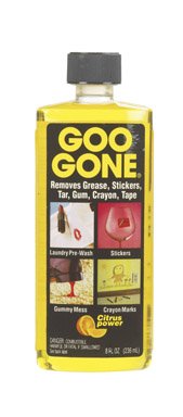 Goo Gone, 8 OZ Remover, Removes Chewing Gum, Grease, Tar, Stickers, Labels, Tape Residue, Oil, Blood, Lipstick & Mascara, Shoe Polish, Crayon, Bumper Stickers From Carpets, Hair, Upholstery, Clothing Vinyl, Leather, Autos & Boats, Fiberglass, Glassware.