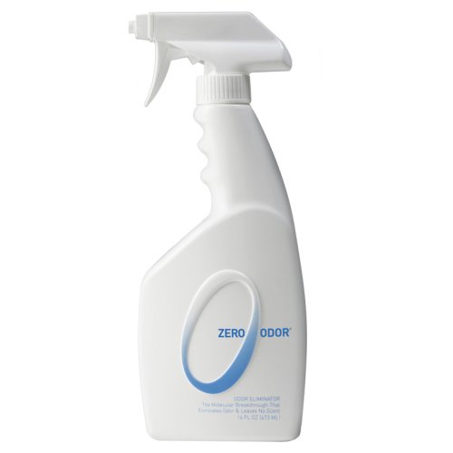16 OZ, Zero Odor, Molecular Odor Eliminator, Spray. Heavy-duty odor removal from kitchens, basements, cars, sports equipment, shoes, diaper pails, dorm rooms, litter boxes, dog beds, and much, much, more